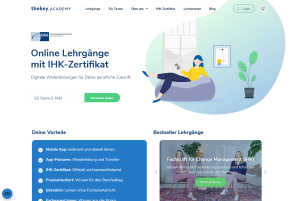 Weiterbildung, die jeder benötigt: digital, flexibel, interaktiv Die thekey.ACADEMY entwickelt Lehrgänge, die es Kunden ermöglichen, ihre Karriere voranzutreiben und ihre Lebensqualität zu verbessern. Die App bietet die Möglichkeit, an jedem beliebigen Ort und zu jeder Zeit zu lernen – in kleinen, gut zu bewältigenden Einheiten. Nach einer Leistungsüberprüfung am Ende des Lehrgangs erhält jeder Nutzer ein gültiges IHK-Zertifikat.